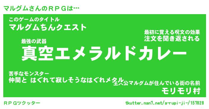 | ヒーロー風カッコイイあだ名 | 『スーパーマルグム』『幻影騎士マル』 |