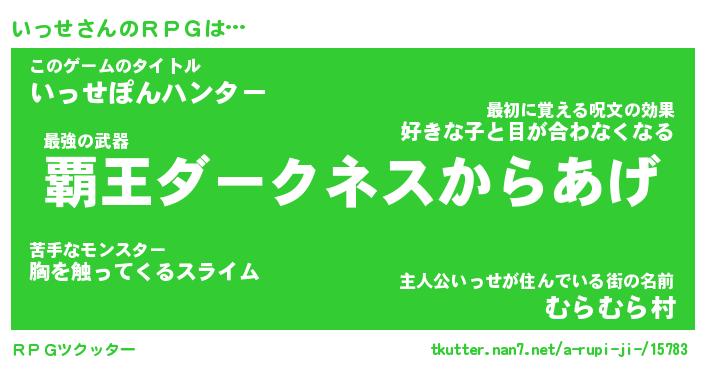 | 伝説のあだ名 | 『封印されし傭兵いっせ』 |