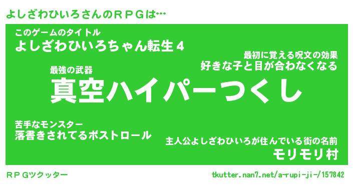 | 伝説のあだ名 | 『封印されし竜騎士よしざわひいろ』 |