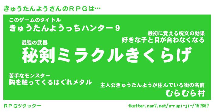 | ヒーロー風カッコイイあだ名 | 『スーパーキュウタンヨウ』 |