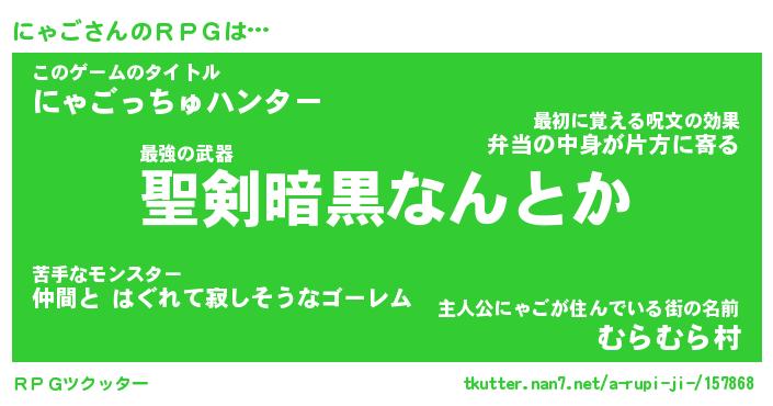 | 伝説のあだ名 | 『伝説の傭兵にゃご』『最古の忍者にゃご』 |