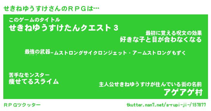 | 伝説のあだ名 | 『不死鳥の竜騎士せきねゆうすけ』 |