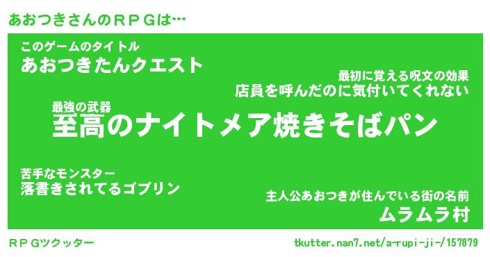 | 男性向けラノベタイトル風あだ名 | 『アオツキアートオンライン』 |