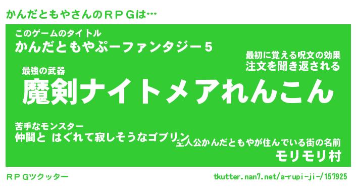 | 伝説のあだ名 | 『伝説のスナイパーかんだともや』 |
