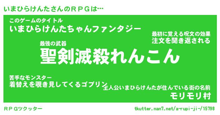 | 男性向けラノベタイトル風あだ名 | 『いまひらけんたの憂鬱』 |