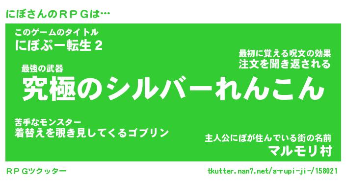 | 伝説のあだ名 | 『不死鳥の傭兵にぼ』『最強の陰陽師にぼ』 |