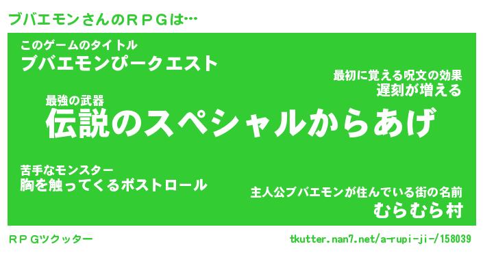 | ファンタジー風あだ名 | 『ブバフェル』『エターナルブバエモンー』 |