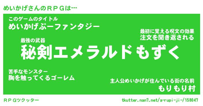 | 胡散臭い通販商品みたいなあだ名 | 『必ず成功する霊験あらたかなお札…その名も「めいかげ」』 |