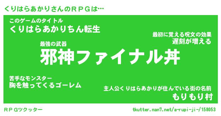 | 伝説のあだ名 | 『封印されし傭兵くりはらあかり』 |