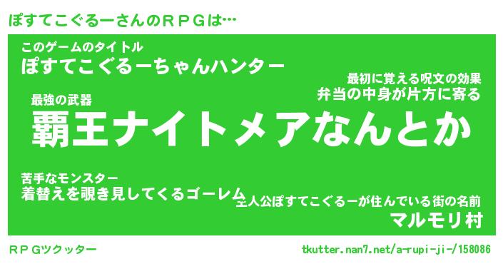 | 伝説のあだ名 | 『封印されしスナイパーぽすてこぐるー』 |