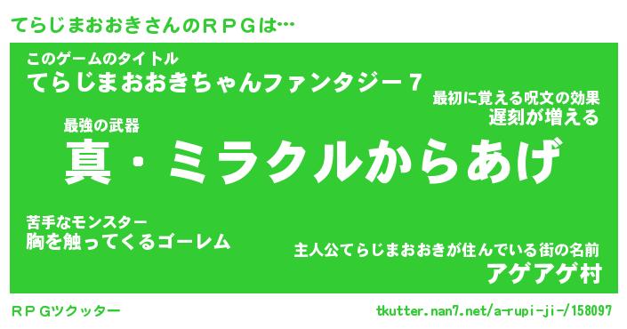 | 男性向けラノベタイトル風あだ名 | 『テラジマオオキアートオンライン』 |
