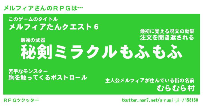 | ファンタジー風あだ名 | 『メルフェル』『エターナルメルフィアー』 |