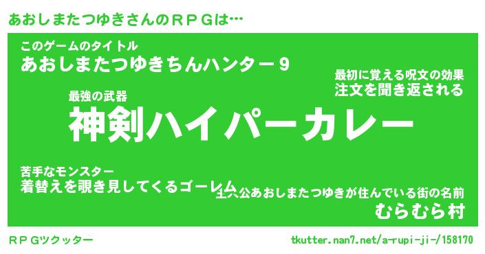 | 伝説のあだ名 | 『不死鳥の竜騎士あおしまたつゆき』 |