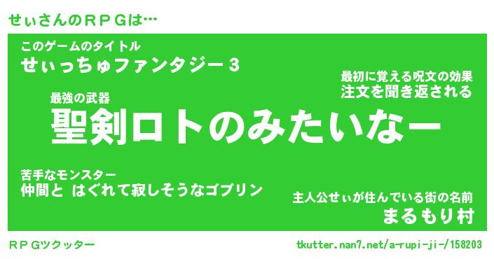 | 伝説のあだ名 | 『伝説の竜騎士せぃ』『最古の忍者せぃ』 |