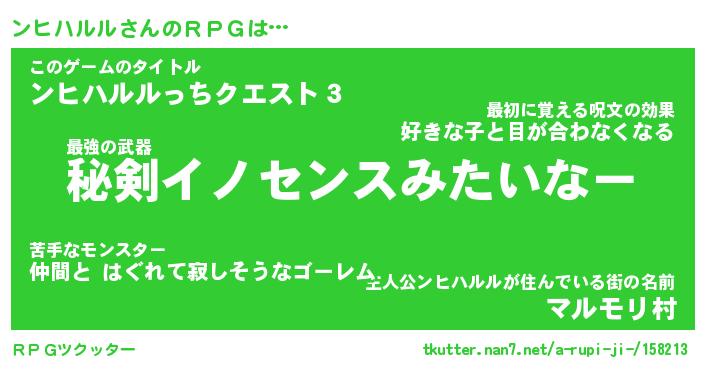 | ヒーロー風カッコイイあだ名 | 『スーパーンヒハルル』『幻影騎士ンヒ』 |