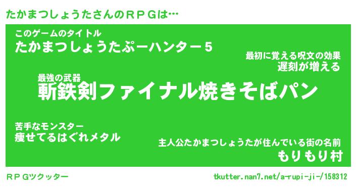 | ヒーロー風カッコイイあだ名 | 『スーパータカマツショウタ』 |
