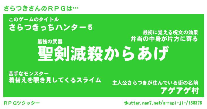 | 伝説のあだ名 | 『伝説のスナイパーさらつき』 |