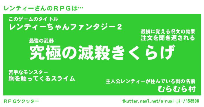 | ファンタジー風あだ名 | 『レンフェル』『エターナルレンティーー』 |