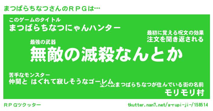 | 伝説のあだ名 | 『封印されしスナイパーまつばらちなつ』 |