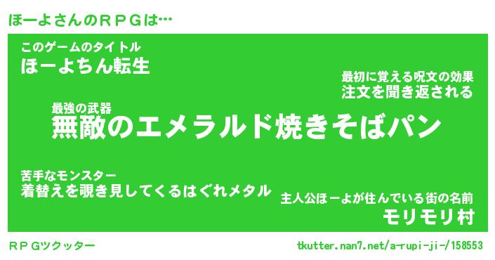 | 胡散臭い通販商品みたいなあだ名 | 『モテモテ間違いなし霊験あらたかなお札…その名も「ほーよ」』 |