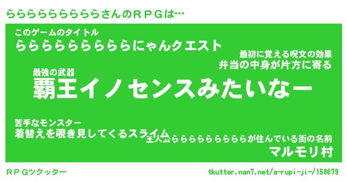 | 胡散臭い通販商品みたいなあだ名 | 『億万長者になれる霊験あらたかなお札…その名も「ららららららららら」』 |