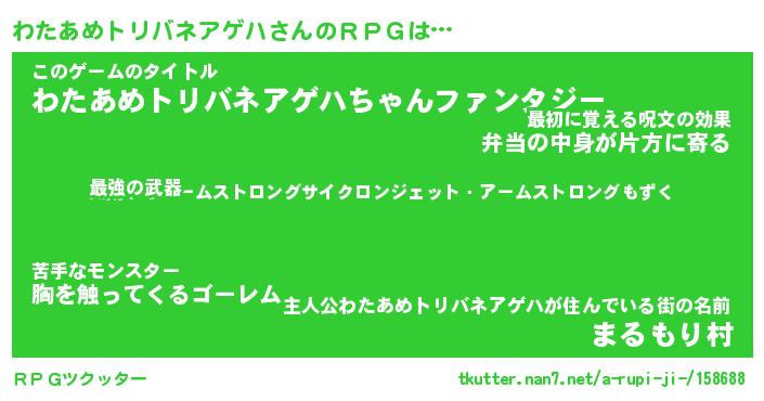| 料理風あだ名 | 『ほっこり♪わたあめトリバネアゲハの味噌そぼろ煮』 |