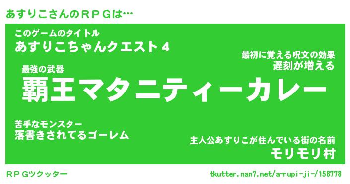 | 伝説のあだ名 | 『封印されしスナイパーあすりこ』 |