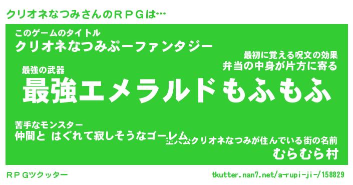 | 料理風あだ名 | 『節約★クリオネなつみと油揚げの玉子丼』 |