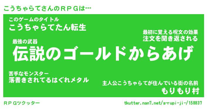 | 胡散臭い通販商品みたいなあだ名 | 『モテモテ間違いなし霊験あらたかなお札…その名も「こうちゃらて」』 |