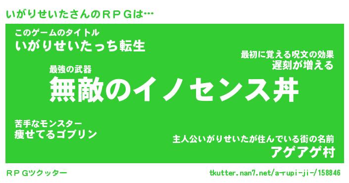 | 男性向けラノベタイトル風あだ名 | 『イガリセイタアートオンライン』 |