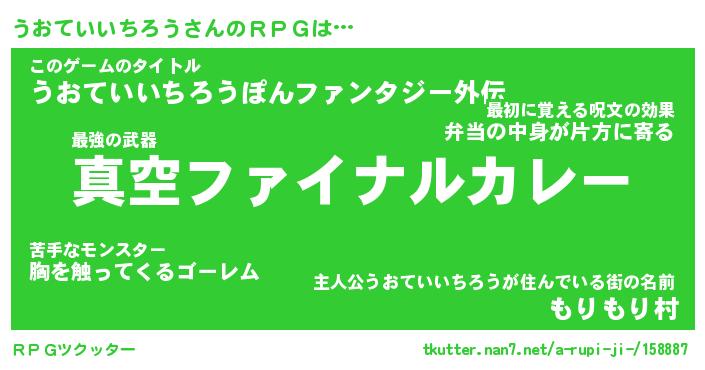 | 男性向けラノベタイトル風あだ名 | 『ウオテイイチロウアートオンライン』 |