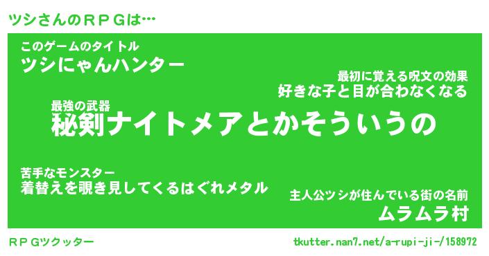 | 男性向けラノベタイトル風あだ名 | 『ツシの憂鬱』 |