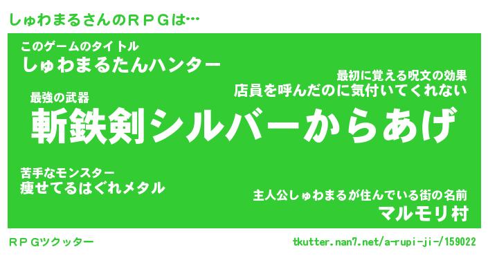 | 伝説のあだ名 | 『伝説の傭兵しゅわまる』 |