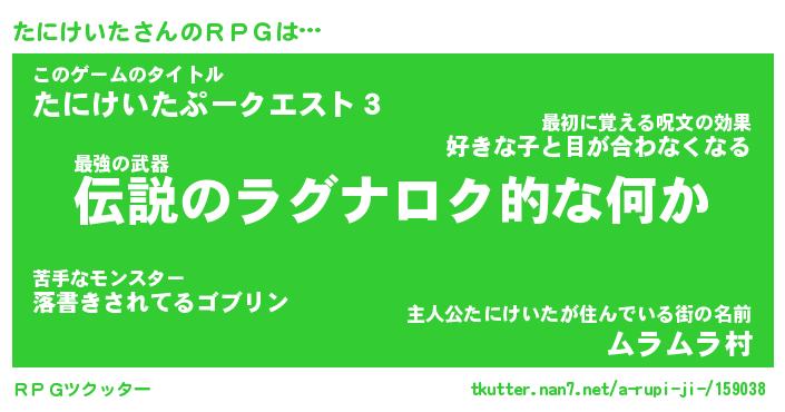 | 男性向けラノベタイトル風あだ名 | 『たにけいたの憂鬱』 |
