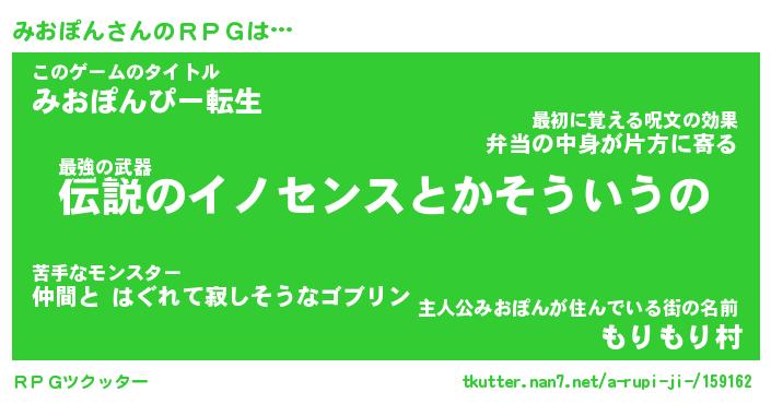 | 胡散臭い通販商品みたいなあだ名 | 『モテモテ間違いなし霊験あらたかなお札…その名も「みおぽん」』 |