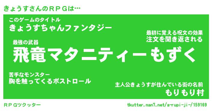 | 男性向けラノベタイトル風あだ名 | 『キョウスアートオンライン』 |