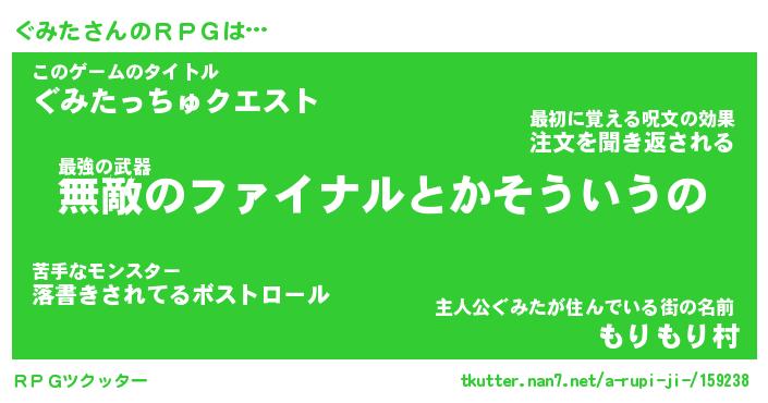 | ファンタジー風あだ名 | 『グミフェル』『エターナルグミター』 |