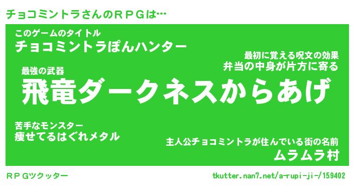 | 伝説のあだ名 | 『封印されし傭兵チョコミントラ』 |