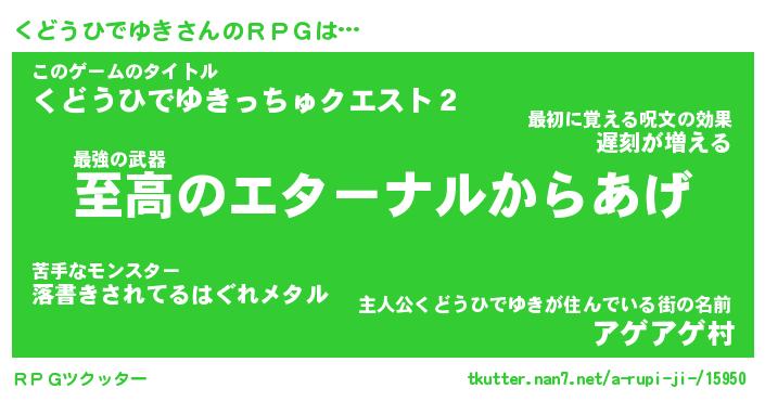 | 男性向けラノベタイトル風あだ名 | 『クドウヒデユキアートオンライン』 |