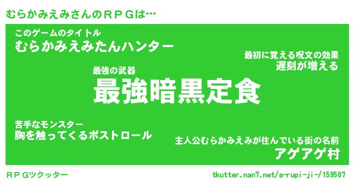 | 男性向けラノベタイトル風あだ名 | 『ムラカミエミアートオンライン』 |
