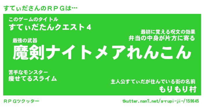 | 伝説のあだ名 | 『伝説のスナイパーすてぃだ』 |