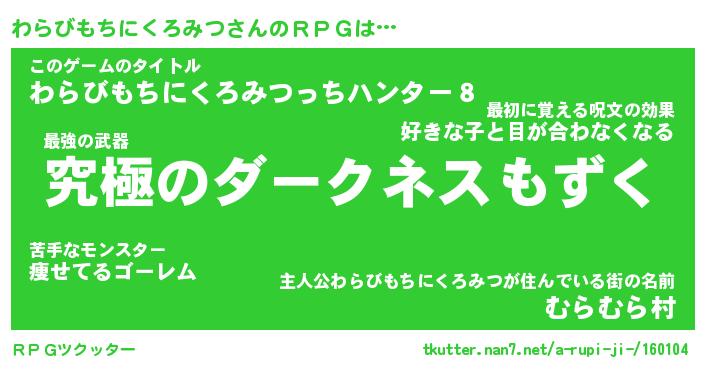 | ヒーロー風カッコイイあだ名 | 『スーパーワラビモチニクロミツ』 |