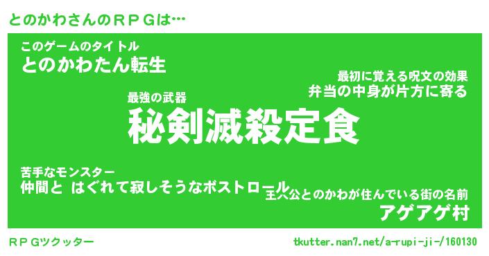 | 男性向けラノベタイトル風あだ名 | 『とのかわの憂鬱』 |