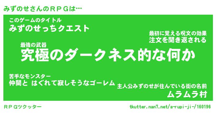 | 男性向けラノベタイトル風あだ名 | 『みずのせの憂鬱』 |