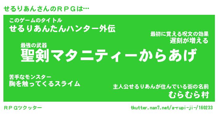 | ファンタジー風あだ名 | 『セルフェル』『エターナルセルリアンー』 |