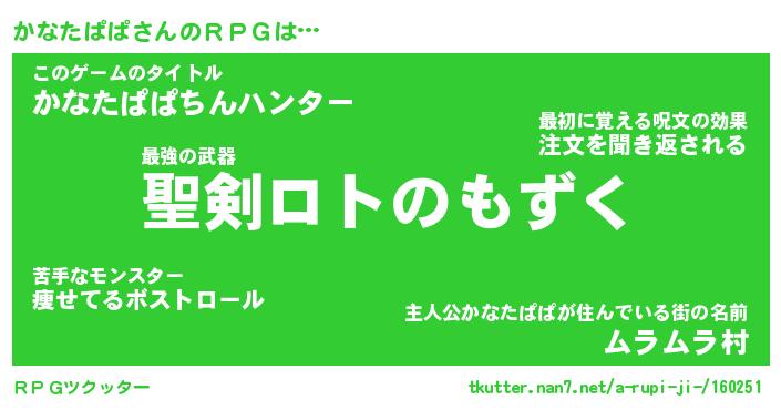 | ファンタジー風あだ名 | 『カナフェル』『エターナルカナタパパー』 |