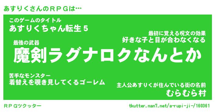 | 男性向けラノベタイトル風あだ名 | 『あすりくの憂鬱』 |