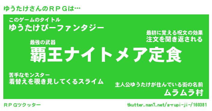 | ファンタジー風あだ名 | 『ユウフェル』『エターナルユウタケー』 |