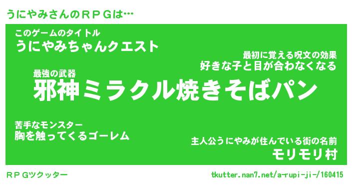 | 伝説のあだ名 | 『封印されし竜騎士うにやみ』 |