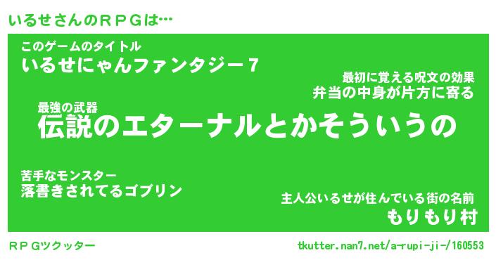 | 男性向けラノベタイトル風あだ名 | 『いるせの憂鬱』 |